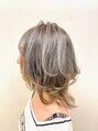白髪ぼかしにも使えます。グレー系のハイライトとローライトで躍動感をだし、根本は暗く毛先は明るくグラデーションにしています。どの長さでも可能です
