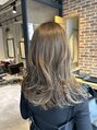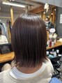 綺麗なカットラインを意識して切りました。カラーリングは赤みを抑え、肌に馴染みやすいベージュ系のカラーを選定しております。