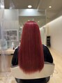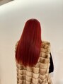 黒髪からブリーチ2時間抜いてから赤をのせました