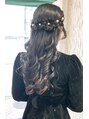 結婚式ゲストのヘアアレンジです。華やかで上品になる様に、お花を作りました。