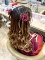 ふたごヘア『編み込みツインハーフ立体リボンお花ウェーブ巻き』/ホットペッパービューティー