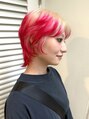 ショートウルフカットハイトーンブロンドレッドデザインカラー/ホットペッパービューティー