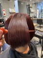 前下がりショートボブと濃いレッド系カラーに髪質改善サブリミックトリートメント☆