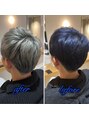メンズカットでアウトラインは自然に刈り上げさせて頂いて全体も量感を調節しているのでワックスをもみ込むだけで簡単にスタイリングできます♪髪色は1ヶ月前にネイビーに染めた色が抜けてきてシルバーのお色味になっています!(写真3枚目)