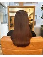 赤みが可愛い艶カラーロングです!根元の癖も酸性ストレートでしっかりボリュームダウン♪乾かしただけでまとまる楽チン艶髪に(*^^*)
