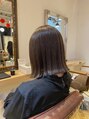 今回はバッサリ肩下ボブまで切り、明るくなってしまっていた髪色をオリーブベージュで少し落ち着かせ艶と潤いを与えました。