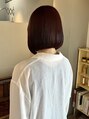寒色系の赤みカラーに前下がりボブの組み合わせ。ワインの様な色味のカラーを合わせてあげることで、落ち着いているけど上品な華やかさが出るので、ダルトーンや無彩色のお洋服が多い方にお勧めです。
