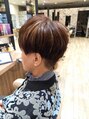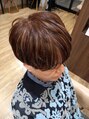 白髪染めをしながらハイライトも入れて、軽さと動きをだしたスタイルです。ヘアスタイルはツーブロックで刈り上げのコンパクトなマッシュです。ブローで立ち上げて毛先に艶をだした後にリファロックオイルでささっとセットしました。
