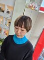 マッシュベースのショートスタイル骨格や毛量を見て、アンダーとトップは繋げないで作ることでタイトなおさまりになります。髪質改善トリートメントでよりおさまりよく仕上げました。インパクトあるカラーがヘアスタイルをより強調します!