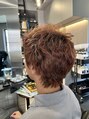 陰影をつけたブリーチカラーで伸ばしかけのショートウルフです。