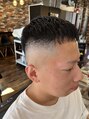 グリグリにパーマかけ周りはフェードでスッキリしてるので前髪長くてもメリハリかっこいいです