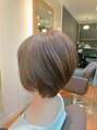 トップの立ち上がり、後ろの丸みをつけた骨格補正ショートスタイル。トリートメントで白髪などのエイジング毛も髪質改善して艶髪へ。(髪質改善/白髪染め/白髪ぼかし/40代/50代/60代/静岡市/葵区)