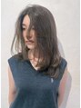 顔まわりにレイヤーを入れて巻くだけで動きが出るミディアムスタイル。カラーは透明感のあるシアーベージュ。