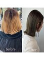 オリーブベージュ グラデーションカラー カーキ切りっぱなしボブ/ホットペッパービューティー
