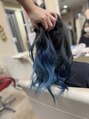 グラデーションでコントラストはっきりさせ根元は暗いブルーに中間はブルーに先はスカイブルーで可愛く仕上げました