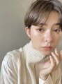 カジュアルになりすぎないように毛先に動きをプラス。スタイリング剤はバームで艶感もキープさせます。ナチュラルなセットで抜け感のある雰囲気に。シアカラー 小顔ヘア 透け感 くびれショート スモーキーカラー 寒色系 ボブ 20代 30代 40代