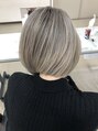 根元に深みを残したシャドールーツカラー。自然な立体感と柔らかい透明感が魅力。色落ちもキレイで大人女性に人気の上品ハイトーンスタイルです。