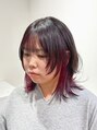 ミディアムのウルフスタイルにインナーカラーで遊びを効かせたスタイル☆顔まわりのレイヤーが骨格補正してくれて可愛いです♪