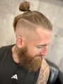 U字に一周ハイフェードでトップはロングのマンバンそのまま結んでいいですがグリースなどつけて結ぶと艶がでて短い毛も出ないのでオススメです!新宿/メンズ/パーマ/ブリーチ/カラー/カット/メンズカット/ツイストパーマ/スパイラルパーマ/メッシュ