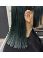 ブリーチベースに、少しグリーンよりよブルーをオン◯青すぎない感じもいいです!切りっぱなしに、耳より前はステップカットで少しエッジをきかせてます◯