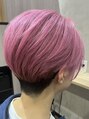 ショートボブのハイトーンカラー襟足は刈り上げたスタイルでカラーはペールピンクに仕上げたスタイルです
