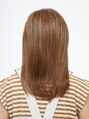 白髪が伸びてきても目立ちにくい明るめベージュブラウンで、肌のトーンもアップします。前髪の分け目が出ないようにすることでトップに高さがでます!