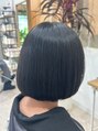 襟足ギリギリの長さに切りました。アイロンやブローで簡単に内巻きに入るので、お手入れが簡単です。