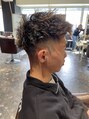 スペインカール×メンズパーマ×メッシュハイライト×フェード