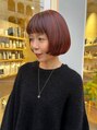 ボブだけど、さりげなくオシャレなデザインに白髪もぼかせるポイントハイライト。カラーはオレンジっぽい赤、似合わせカラーでお肌のトーン高めに。似合うラインで設定し、前上がりにカット♪長く楽しめるデザインなので、色落ちも楽しみ◎