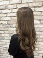 表面にしっかりレイヤーを入れて、細すぎないくらいの筋感のハイライトを全体に入れて、オンカラーはグレージュ系にしました。