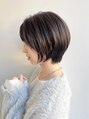 顎くらいの大人ショート、ミニボブ。ベージュカラーで、透明感と柔らかい印象になれます。オイルバームを髪全体に馴染ませるだけのツヤ髪になれる簡単スタイリング。
