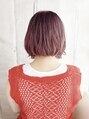 ツヤ感のあるピンクカラーに毛先のニュアンスカールが可愛いアレンジボブスタイルです。顔周りのカールが小顔効果や軽さを出します。