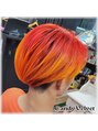メンズの派手色ヘアーオレンジから毛先イエローに変化していくグラデーションカラーもちろん女性の方にもオススメです