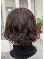 ボブにカットしレッドブラウンでフルカラーリング♪ウェーブパーマをしたようなクセ毛をいかしてウェーブヘアにスタイリング♪