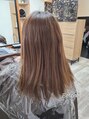 ブリーチなしで作るピンクブラウンカラーに☆ 今回は透明感強めの9レベルに設定★ 暖色系はツヤ感も◎