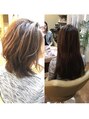- トップにボリューム + 浮遊感カット + ハイライトカラー+ブルージュカラー