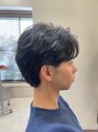センターパートをスタイリングしやすいように、後ろ流しのパーマをかけました。
