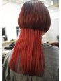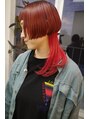クラゲの様なフォルムの遊び心満載のヘア襟足はエクステの様に違和感を2種類の赤で作るコントラストが楽しい