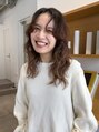 癖毛の方でももっと髪質を活かせる様に上からパーマを当てたミディアムパーマスタイル。大きめカールでゆるっとしたスタイルに、ムースなどのスタイリング剤でドライな質感で外国人風なヘアスタイルを楽しめます。