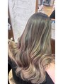 顔周りの明るいカラーとカールが立体感を生み出し、女性らしさとトレンド感を兼ね備えたスタイル。