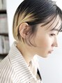 コンパクトなミニボブスタイル*根本を残した毛先のハイトーンカラーが抜け感をプラスします。【担当スタイリスト】英太ミニボブ/ボブ/シースルー/ケアブリーチ/デザインカラー/ブリー/ハイライト/ハイトーン/耳掛けショート/デザインボブ/前髪ありボブ