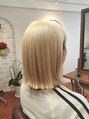 全体が明るく内側が黒い逆インナーカラーです。内側が黒いことで影が強調されて立体感が出やすく、顔まわりに黒が来ることで小顔に見える効果もあります。全体のブリーチは髪質によって一度では足りない場合もございます。
