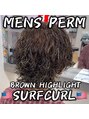 【サーフカールパーマ】メンズウルフブラウンハイライトメッシュ/ホットペッパービューティー