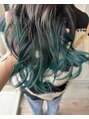 地毛からのグラデーション☆グリーン、ブルー、ターコイズなど3色くらいミックスしてグラデーションにしました。