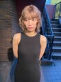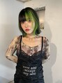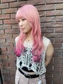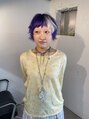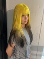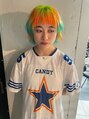 アシンメトリーなポイントオレンジデザインカラー/ハイトーン/ペールカラー/抜きっぱなし/ブリーチカラー/ホワイトカラー/ピンクカラー/グリーンカラー