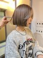 くすみ感のあるベージュカラーです。ブリーチ2回~【切りっぱなしボブ/ショートボブ/ショート/顔まわりレイヤー/前髪カット/インナーカラー/ダブルカラー/ハイトーン/ブリーチ/ケアブリーチ/天神/大名/福岡】
