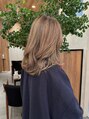 細めのハイライトをたっぷり入れたミディアムレイヤースタイル。毛先に量は残しながらまとまるスタイルにしています。スキバサミを使わずにカットします♪