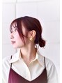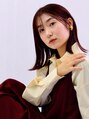 バイオレットピンクのカラーがポイントです。スタイリングは32ミリのコテを使用して外ハネにセット。薄めの前髪も女子力アップのポイントです。