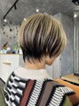 - カット+ブリーチWカラー/ショート/レイヤー/フェイスレイヤー/アディクシー/ハイライトカラー/白髪ぼかし/