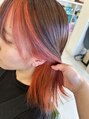 表面は明るめのブラウンカラーで!!インナーカラーをブリーチでしっかり明るくしてオレンジを入れました^^
